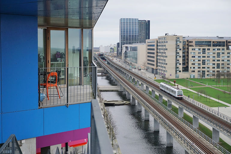 Le squelette de chacun de ces doigts, de ces excroissances urbaines, c’est l’infrastructure. Le chemin de fer pour les cinq premiers, le métro automatique pour Ørestad. La conception du quartier est calquée sur la méthode britannique de renouvellement urbain : Transportation first. On réalise en premier lieu le réseau d’infrastructure à partir d’investissements publics, ici la ligne de métro qui voit le jour en 2000 au milieu de nulle part. Ensuite on vend les terrains aux alentours (qui ont maintenant pris de la valeur) à des opérateurs privés pour qu’ils réalisent les logements, bureaux ou équipements préfigurés par un plan urbain de référence - les bénéfices de la vente des terrains venant rentabiliser l’investissement originel de la construction du métro.